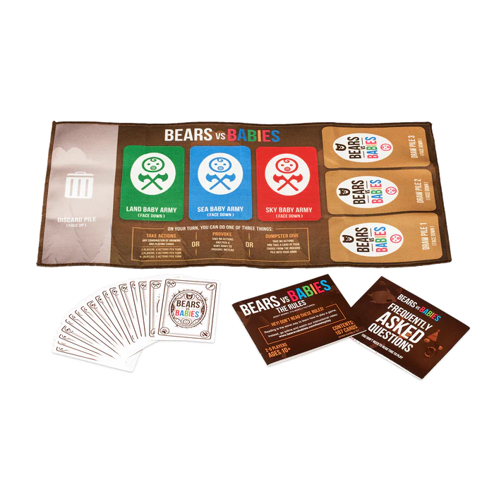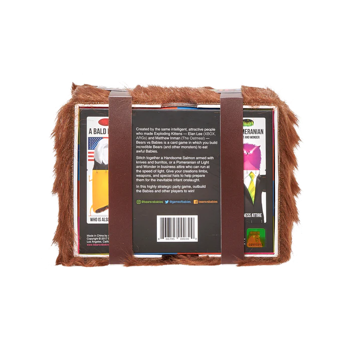 Bears vs Babies is a card game where you build incredible monsters who go to war with horrible, awful babies. Stitch together a Handsome Salmon armed with knives and burritos, or a Pomeranian of Light and Wonder in business attire who is being piloted by a robot-squirrel. Give your creations limbs, weapons, and special hats to help prepare them for the inevitable infant onslaught.