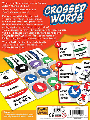 Crossed Words, the brain-bending party game of crazy categories and wackier words!