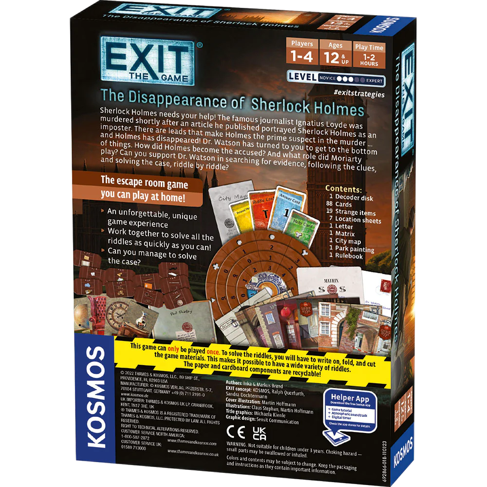 *One-time use: this game can be played only one time because you must mark up, fold, and tear the game materials to solve the riddles and escape.
