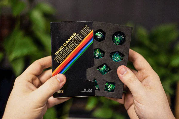 The last set of VHS-themed sharp-edge resin dice you'll ever need.