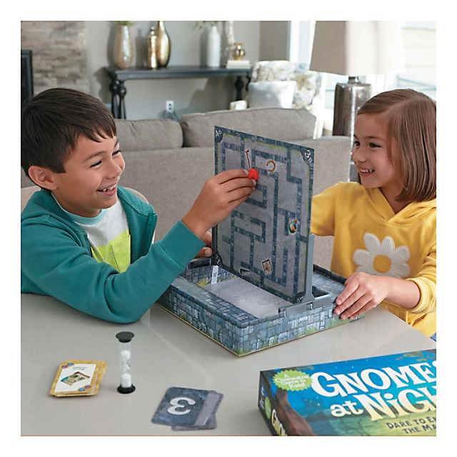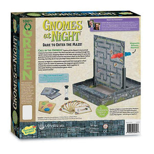 Someone has stolen the Queen’s treasures and has dropped them in the castle’s twisty maze. Luckily, the trusty gnomes are here to help! Players work together to maneuver the magnetic gnome movers around the mazes to collect all the treasures before time runs out. Use communication, strategy and quick thinking to find the treasures and win the game!