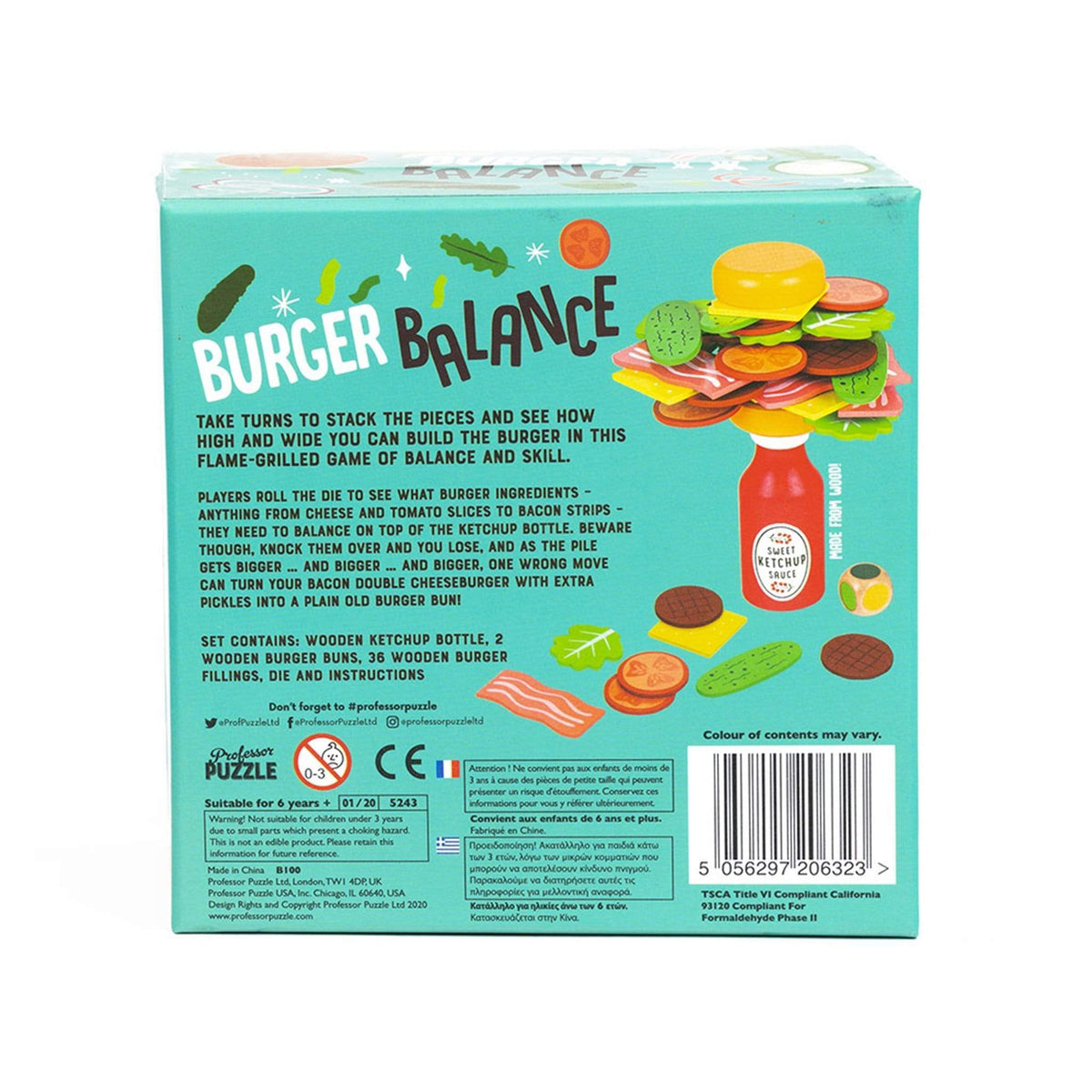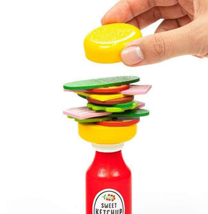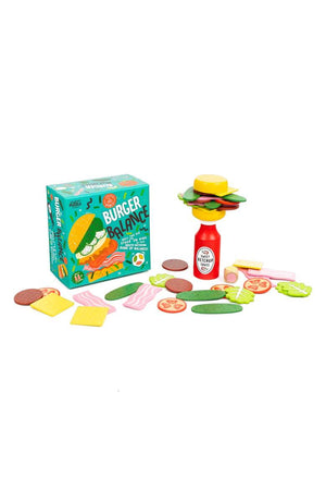 Players take turns to roll the dice and see what burger ingredients they can balance on top of the ketchup bottle. Beware though, as the pile gets bigger … and bigger … and bigger, one wrong move can turn your bacon double cheeseburger with extra pickles into a plain old burger bun!