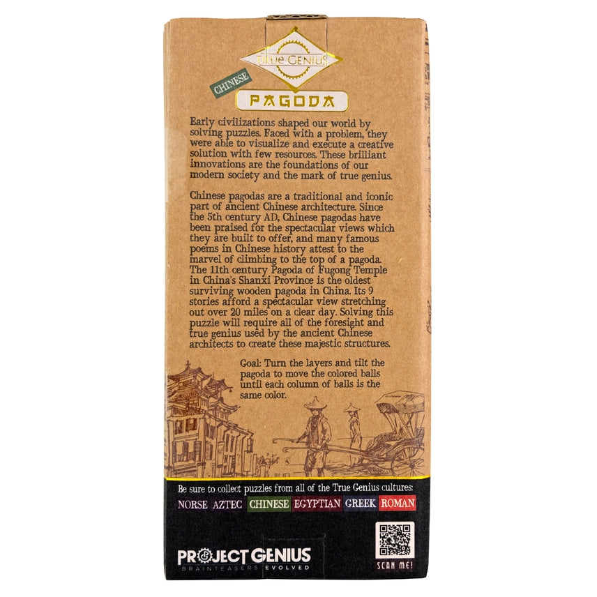 Chinese pagodas are a traditional and iconic part of ancient Chinese architecture. The 11th century Pagoda of Fugong Temple in China's Shanxi Province is the oldest surviving wooden pagoda in China. It's 9 stories afford a spectacular view stretching out over 20 miles on a clear day. Solving this puzzle will require all of the foresight and true genius used by the ancient Chinese architects.
