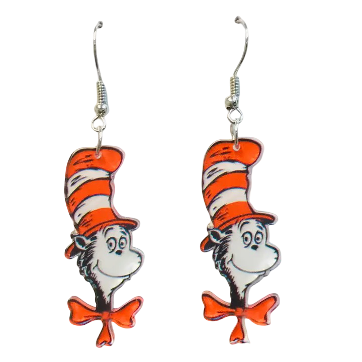 Cat in the Hat Dr. Seuss Acrylic Earrings