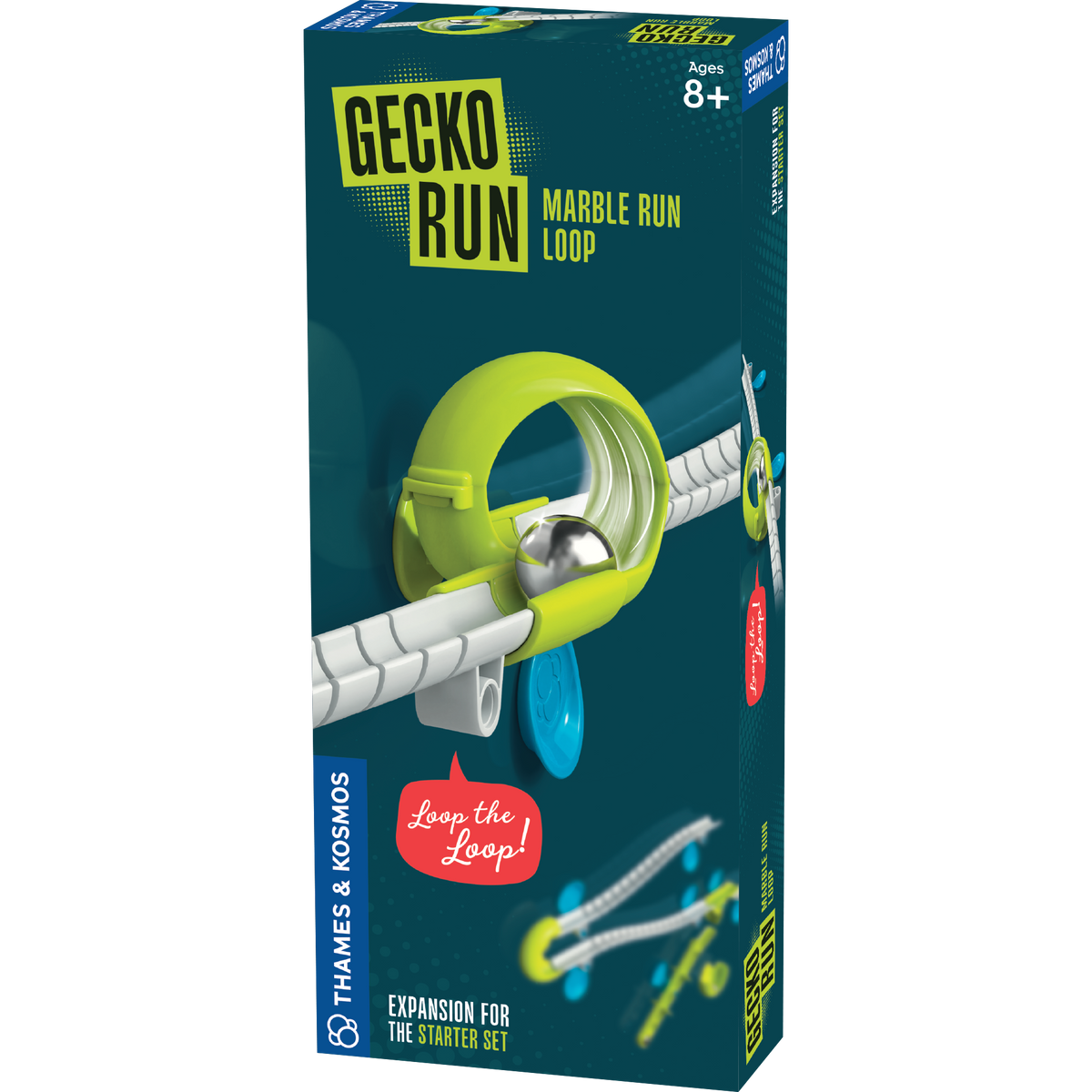 With the Gecko Run: Loop Expansion Pack, you can bring even more speed, action, and experimental fun to your Gecko Run marble run. How much speed does the marble need to race perfectly through the loop? Experiment and find out!