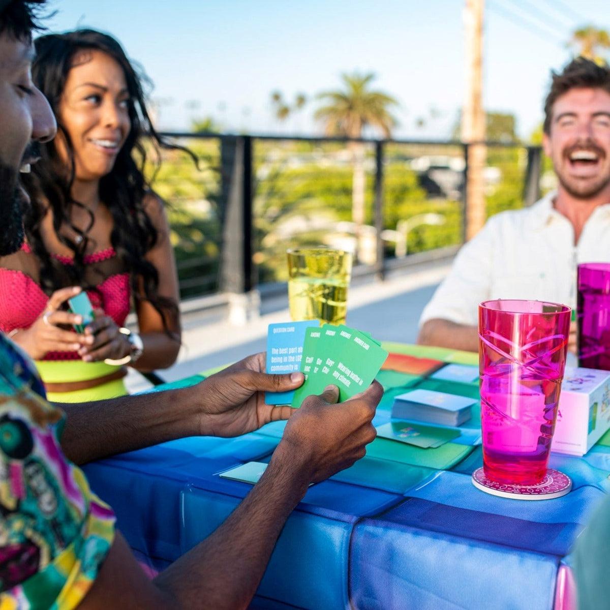 The game is simple. Each round one player picks a Question Card. The other players share their best Answer Card. The funniest pair wins.