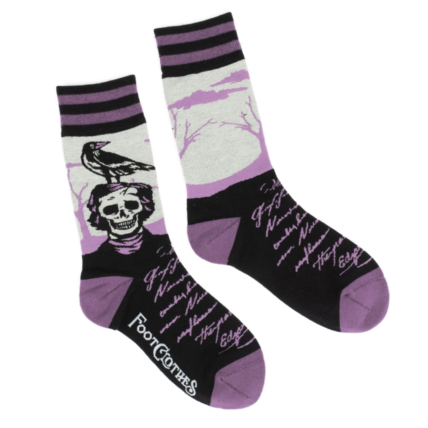 For fans of the macabre and dark, these socks are great for wearing while tapping at chamber doors. Behold, a tribute to the great Edgar Allan Poe. Next time you ask a raven if you should wear socks that aren't these, he will quoth, "nevermore."