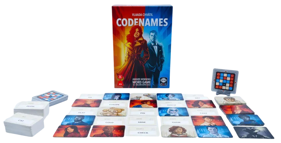 Two teams compete to see who can make contact with all of their agents first. Spymasters give one-word clues that can point to multiple words on the board. Their teammates try to guess words of the right color while avoiding those that belong to the opposing team. And everyone wants to avoid the assassin.