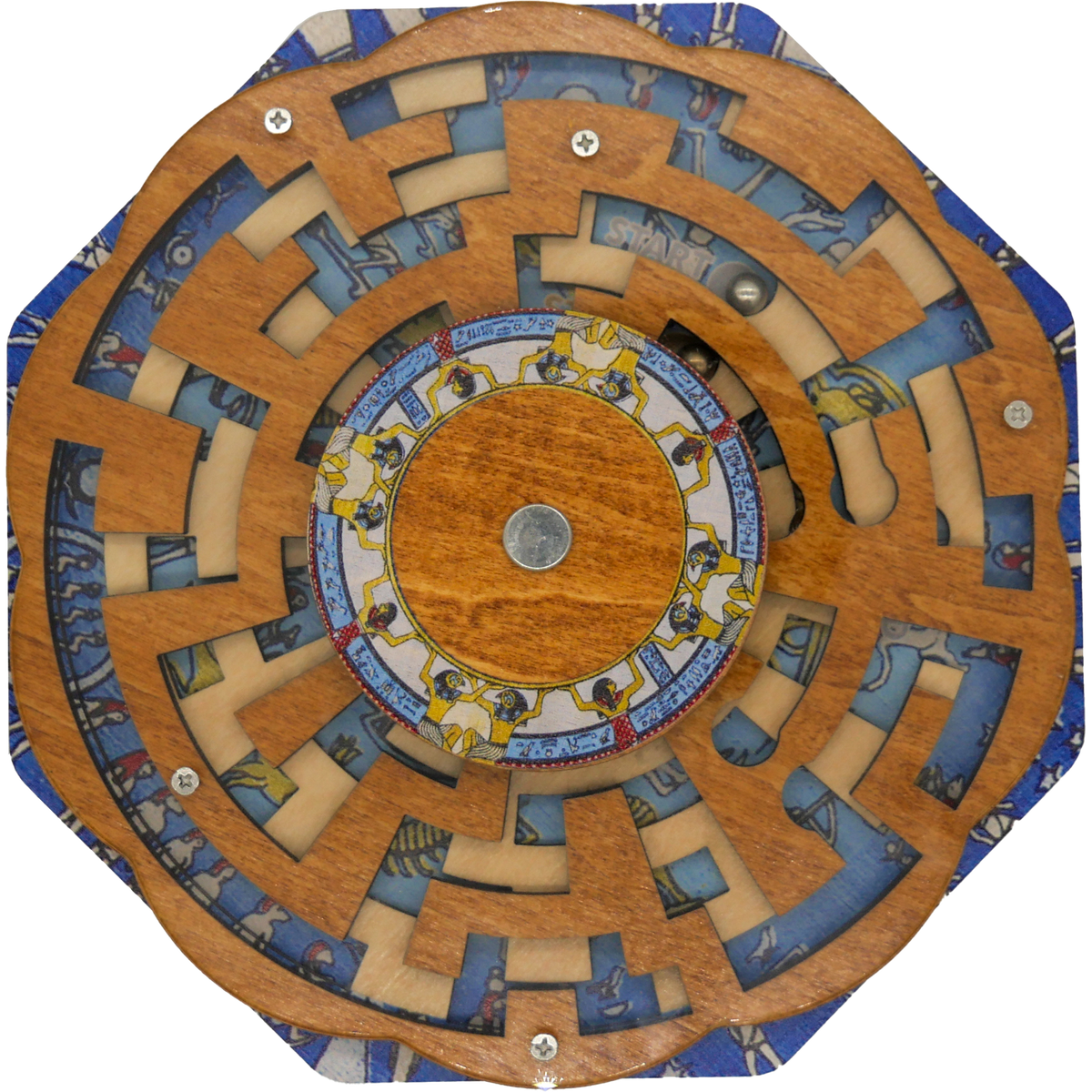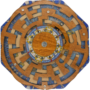 Twist the top layer of the maze to open new pathways for both of the ball bearings to navigate from their respective start-to-finish paths through the constellations of the ancient night sky.