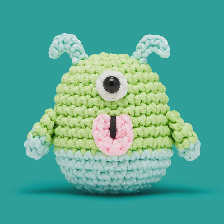 Meet Zorp the Martian. He's part of the Woobles family - a Beginner Crochet Kit!